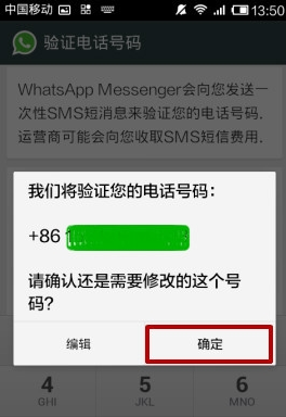 进入验证电话号码页面,在输入框中输入自己的手机号码,点击确定。弹出确认对话框,选择确定。